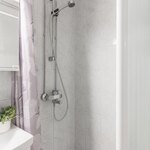 Allas, allaskaappi ja hana on uusittu 2025. Suihkuseinän oikealla puolella pesukoneelle paikka.