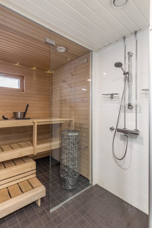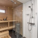 | Saunan kuvaus | Saunan ja pesuhuoneen välissä lasiseinä. Saunassa tuuletusikkuna. |