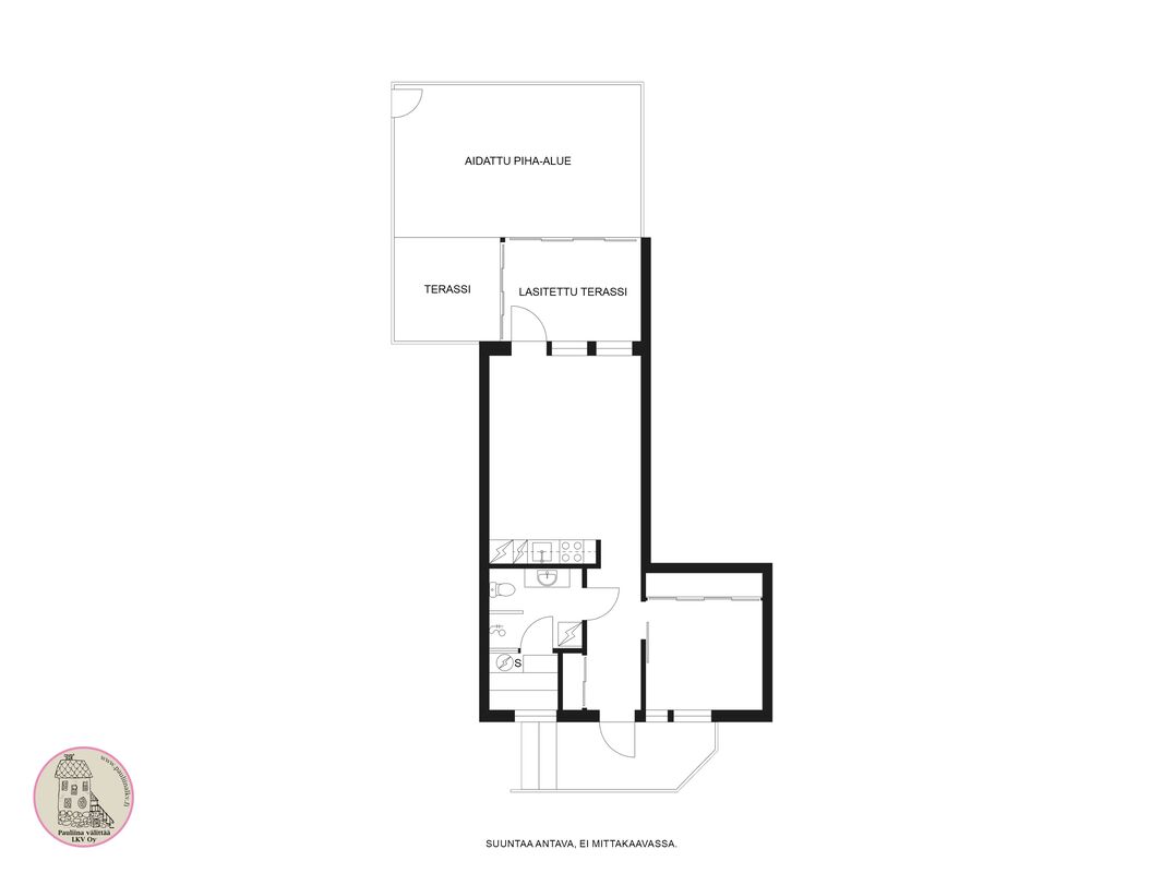 | Huoneistoselitelmä | 2h, avok, s, lasitettu terassi, aidattu piha-alue |