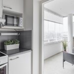Lasitetulla parvekkeelle on asumismukavuutta lisäävät Vizorin kaihtimet.