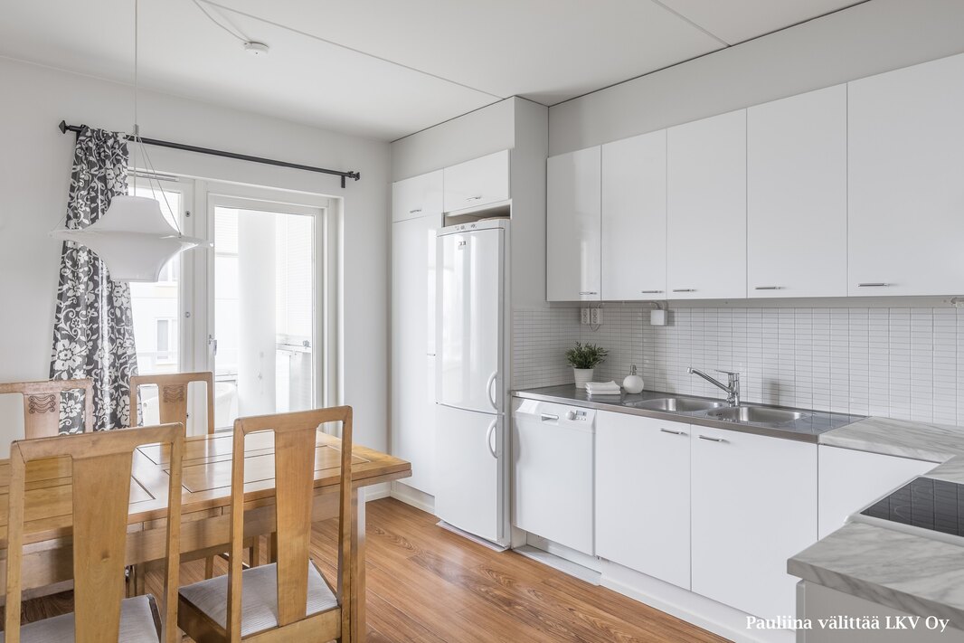 | Keittiön varustelu | Laatikoissa ja kaapinovissa softclose-toiminto. |