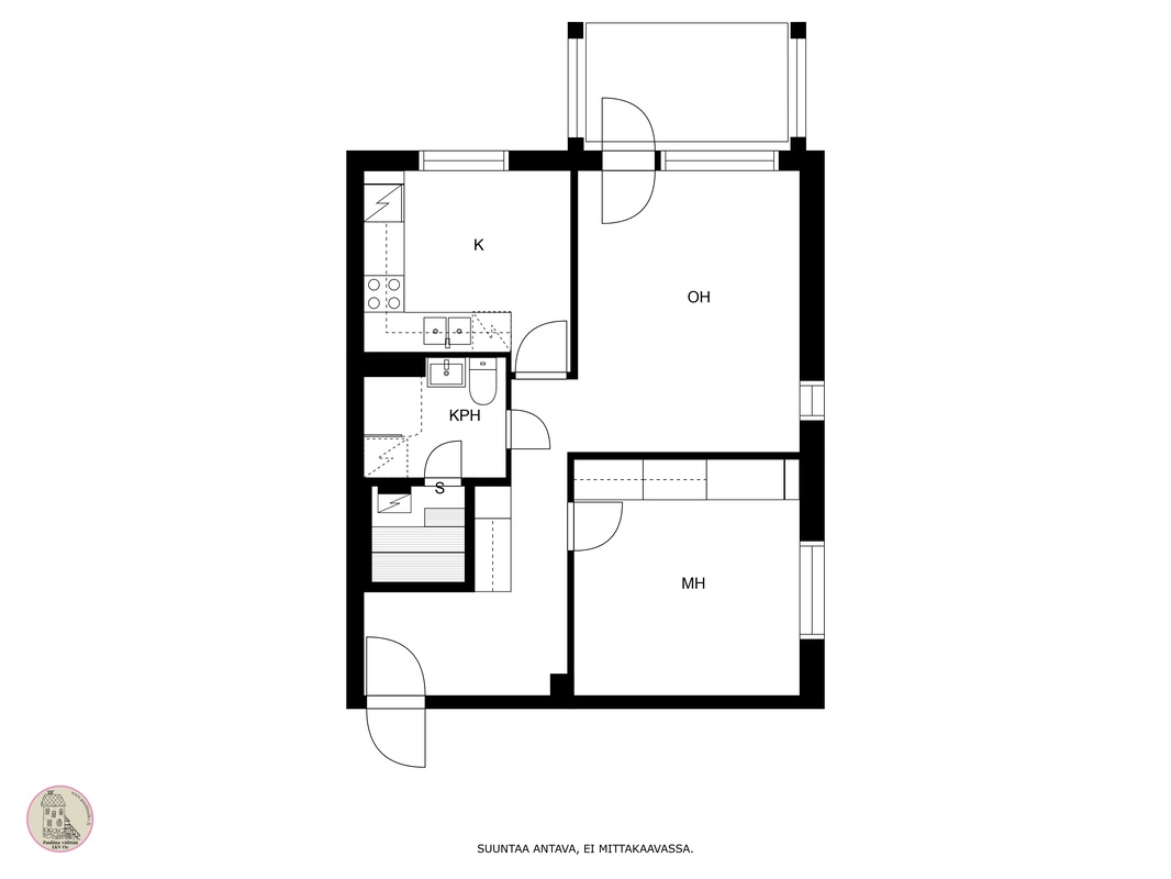 | Huoneistoselitelmä | 2h, k, s, lasitettu parveke |