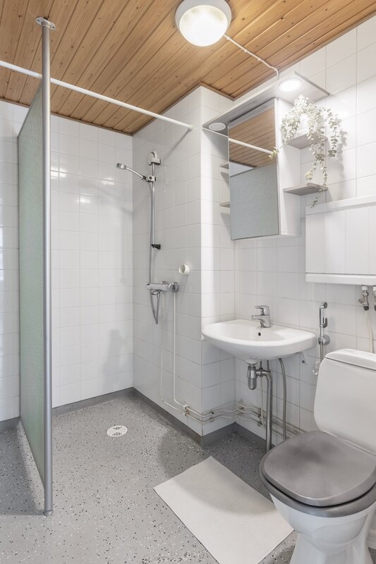 Kylpyhuoneessa on tilaa pyykinpesukoneelle.
