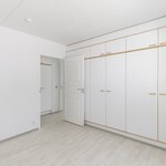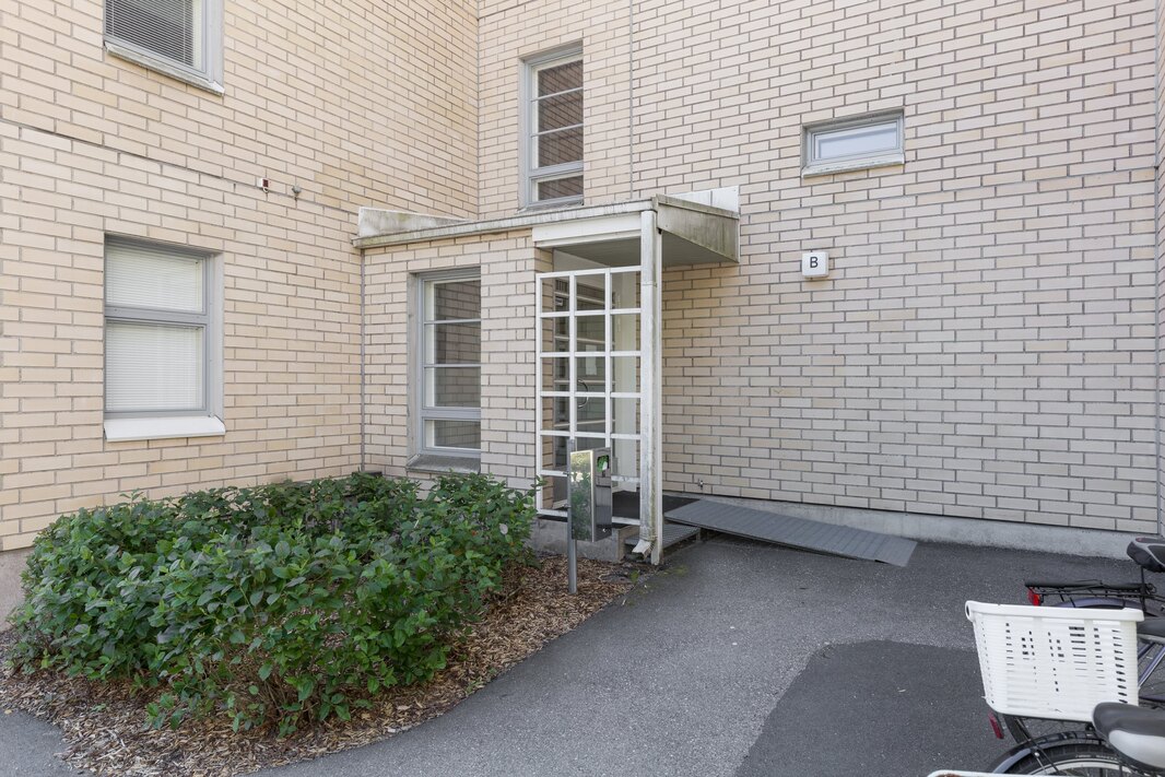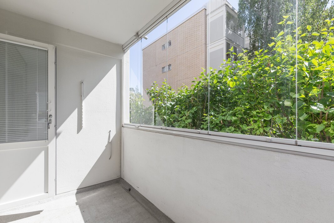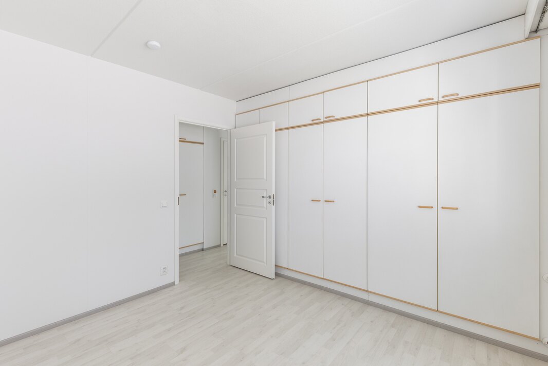 Makuuhuoneessa yksi seinällinen kaapistoja, eteiskäytävällä ulkovaatteiden säilytyskaapisto ja siivouskaappi, huoneistokohtainen varastotila kellarissa. Olohuoneesta käynti lasitetulle parvekkeelle.