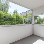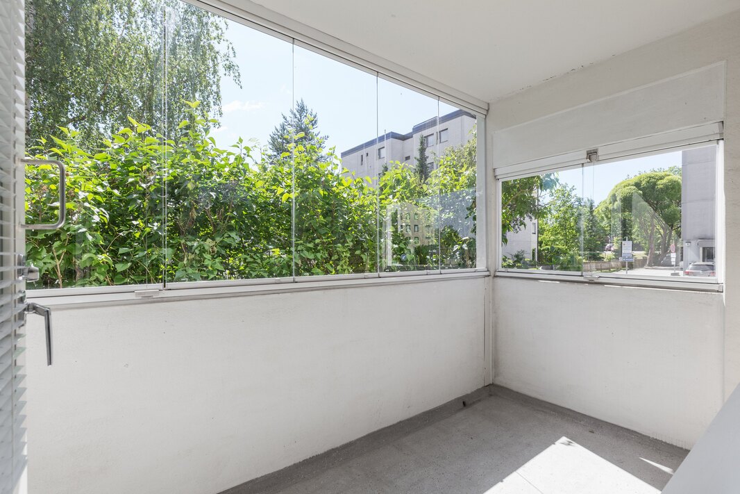 Olohuoneesta on käynti lasitetulle parvekkeelle.