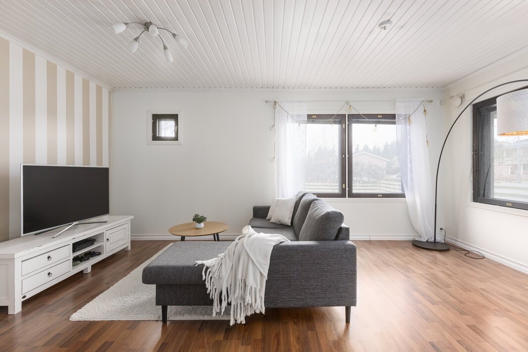 Olohuoneessa on hyvin tilaa esim. työpisteelle tai isommalle ruokapöydälle.