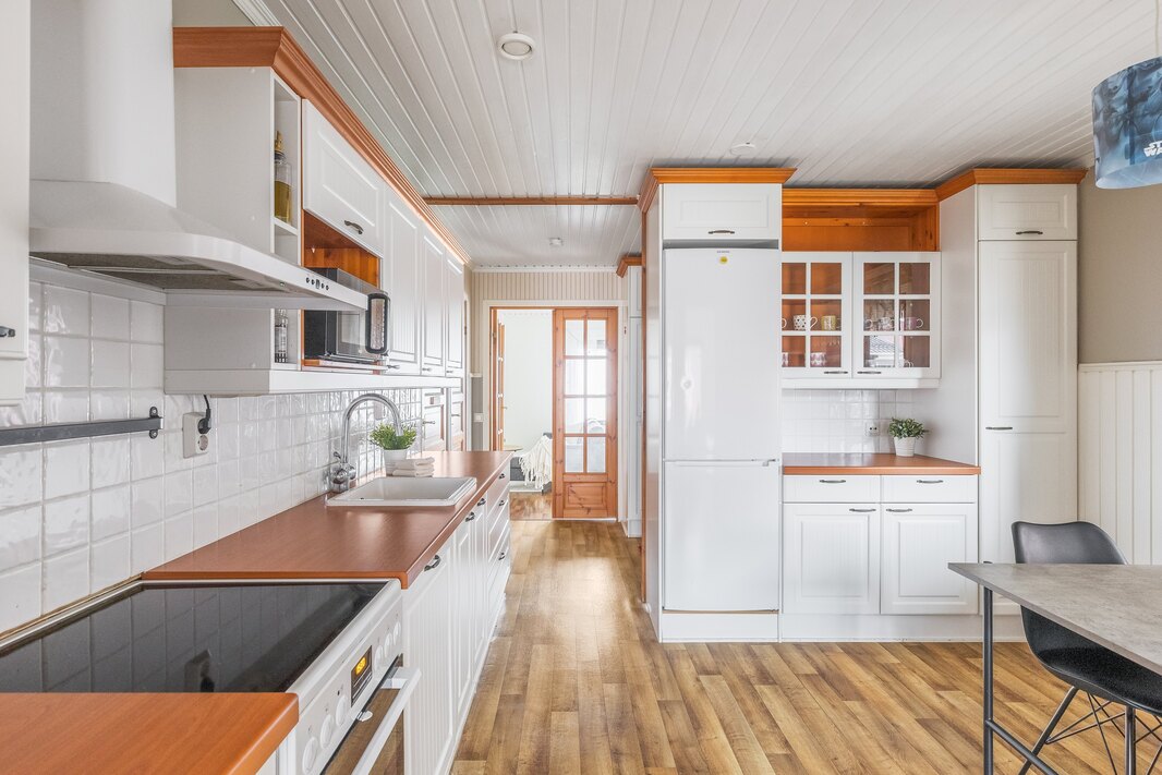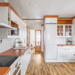 | Keittiön varustelu | Kaapistoissa softclose-toiminto. Mikroaaltouunille paikka kaapistossa. Kodinkoneiden hankintavuodet ei ole tiedossa. |