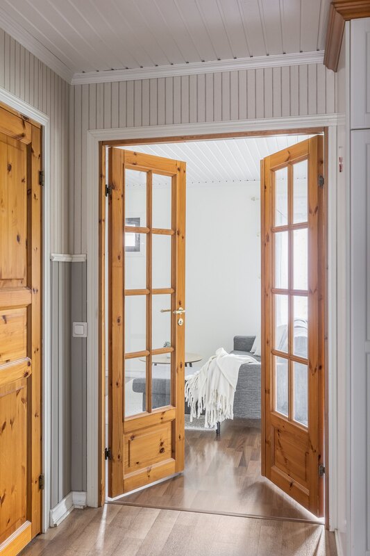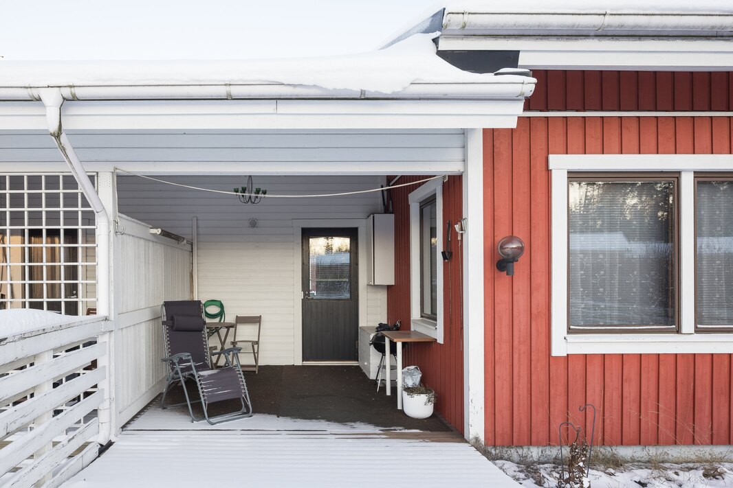 Tuulikaapista on ovi takaterassille/takapihalle.