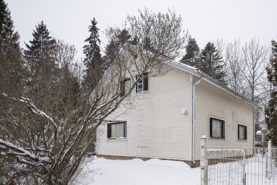 | Kunto | Talo vaatii kunnostusta, kuntotarkastusraportissa suositeltiin mm. ikkunoiden uusimista. |