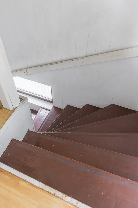 Ensimmäinen yläkerran makuuhuone portailta katsottuna.