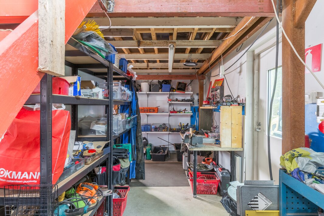 | Säilytystilojen kuvaus | Yläkerran isomman makuuhuoneen yhteydessä vaatehuone, kellarin toisen askarteluhuoneen yhteydessä vaatehuone sekä portaiden alustila, erillinen vaatehuone kellarikerroksessa. |