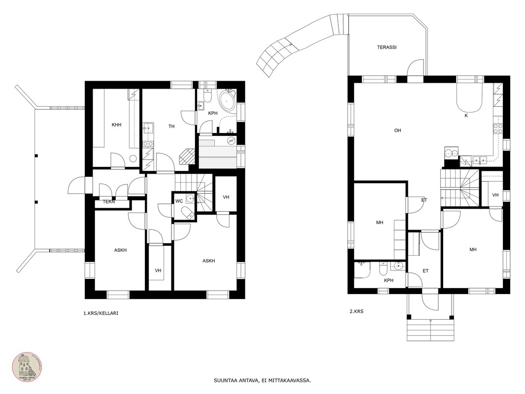 | Kylpyhuoneen kuvaus | Kylpyhuoneet molemmissa kerroksissa. |